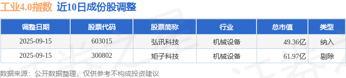 近10日内工业4.0(399803)指数成份股做了调整,新纳入了1只股票,剔除了1只股票。