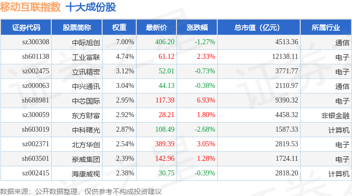 近10日内移动互联(399970)指数成份股做了调整,新纳入了1只股票,剔除了1只股票。