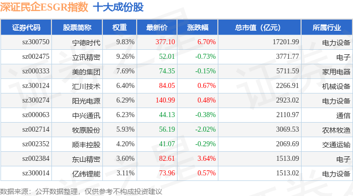 深证民企ESGR(470056)指数十大成份股详情如下: