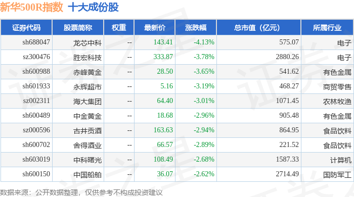 资金流向方面,新华500R(489001)指数成份股当日主力资金净流出合计176.98亿元,游资资金净流入合计50.05亿元,散户资金净流入合计126.92亿元。成份股资金流向详情见下表: