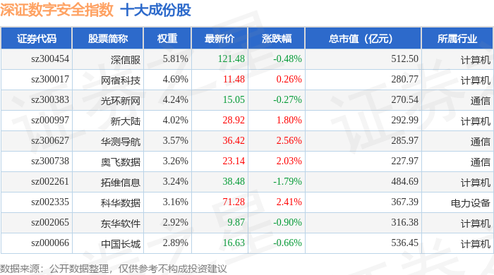 证券之星消息,9月17日,深证数字安全(970052)指数报收于3857.36点,涨0.69%,成交466.94亿元,换手率5.52%。当日该指数成份股中,上涨的有24家,恒宝股份以6.44%的涨幅领涨,下跌的有26家,易华录以2.6%的跌幅领跌。