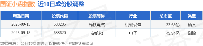 近10日内国证小盘(980202)指数成份股做了调整,新纳入了1只股票,剔除了1只股票。