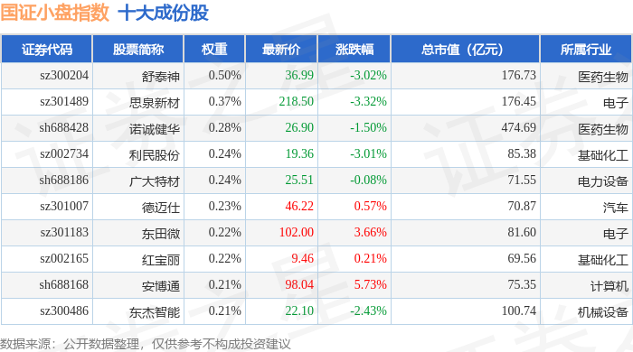 证券之星消息,9月17日,国证小盘(980202)指数报收于1781.02点,涨0.28%,成交2186.45亿元,换手率4.16%。当日该指数成份股中,上涨的有647家,泓禧科技以29.99%的涨幅领涨,下跌的有822家,邦基科技以8.32%的跌幅领跌。