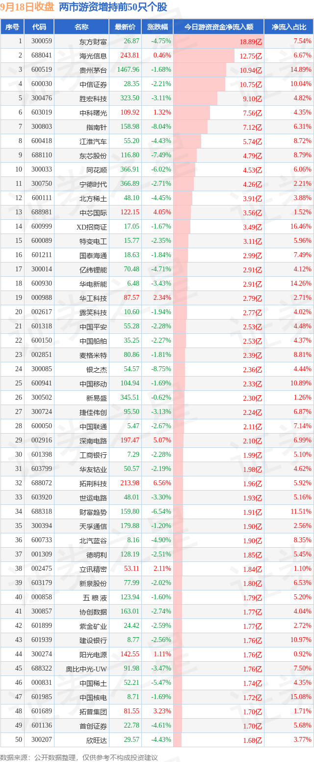 证券之星消息,9月18日A股收盘,沪指跌-1.15%,报收3831.66点;深成指跌-1.06%,报收13075.66点;创业板指跌-1.64%,报收3095.85点。