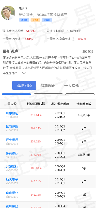 中科飞测(688361)是基金大佬杨谷的重仓股。,其在整个职业生涯内年化收益高达14.81%。杨谷的大佬持仓 - 战绩回顾截图如下:
