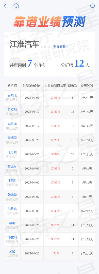 江淮汽车(600418)是基金大佬冯明远的重仓股。,其在整个职业生涯内年化收益高达17.26%。冯明远的大佬持仓 - 战绩回顾截图如下: