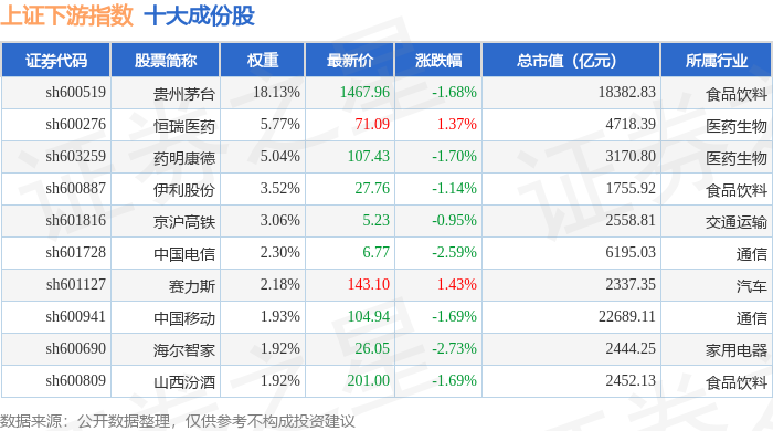 上证下游(000096)指数十大成份股详情如下: