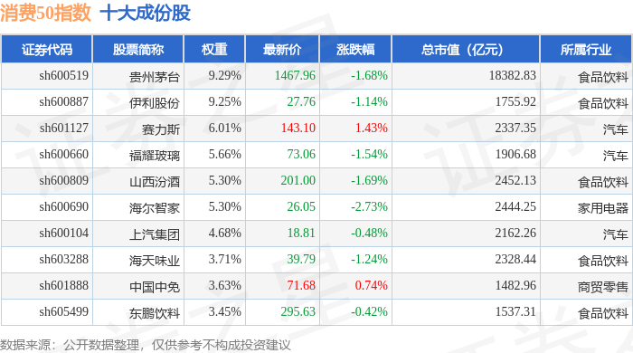 证券之星消息,9月18日,消费50(000126)指数报收于8814.87点,跌0.82%,成交669.22亿元,换手率1.74%。当日该指数成份股中,上涨的有10家,均胜电子以9.99%的涨幅领涨,下跌的有40家,春风动力以4.22%的跌幅领跌。