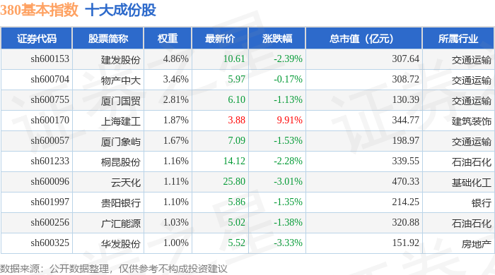 资金流向方面,380基本(000128)指数成份股当日主力资金净流出合计82.7亿元,游资资金净流入合计4.41亿元,散户资金净流入合计78.29亿元。成份股资金流向详情见下表: