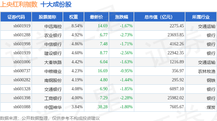 资金流向方面,上央红利(000152)指数成份股当日主力资金净流出合计44.11亿元,游资资金净流入合计14.47亿元,散户资金净流入合计29.63亿元。成份股资金流向详情见下表: