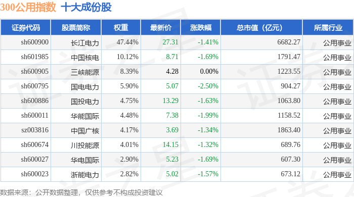 资金流向方面,300公用(000917)指数成份股当日主力资金净流出合计12.29亿元,游资资金净流入合计4.69亿元,散户资金净流入合计7.61亿元。成份股资金流向详情见下表: