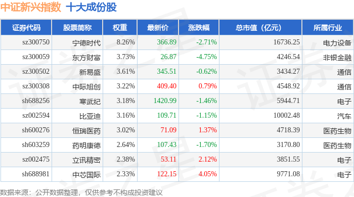 中证新兴(000964)指数十大成份股详情如下: