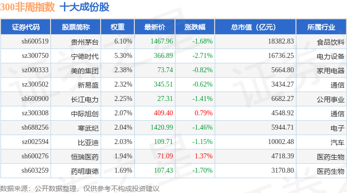 证券之星消息,9月18日,300非周(000969)指数报收于5341.18点,跌0.48%,成交6408.81亿元,换手率1.54%。当日该指数成份股中,上涨的有54家,中微公司以11.43%的涨幅领涨,下跌的有142家,晶澳科技以5.54%的跌幅领跌。