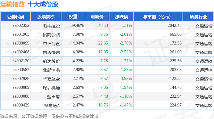 资金流向方面,运输指数(399237)成份股当日主力资金净流出合计4.49亿元,游资资金净流入合计4571.28万元,散户资金净流入合计4.03亿元。成份股资金流向详情见下表: