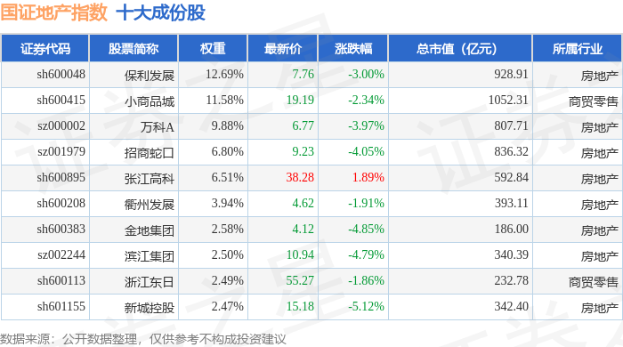 国证地产(399393)指数十大成份股详情如下: