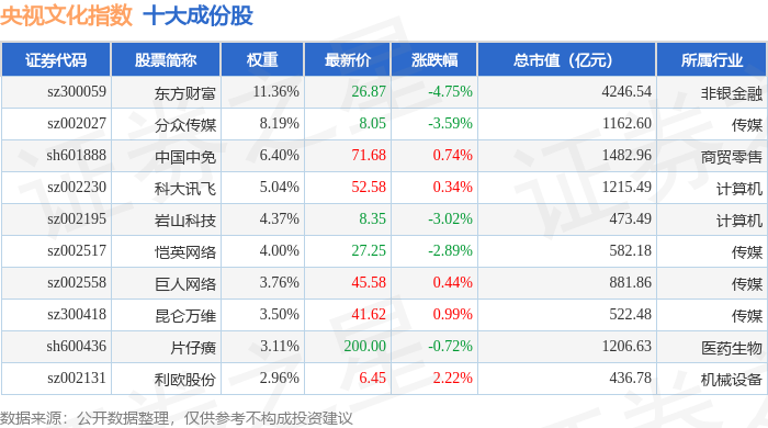 资金流向方面,央视文化(399557)指数成份股当日主力资金净流出合计78.27亿元,游资资金净流入合计22.28亿元,散户资金净流入合计55.99亿元。成份股资金流向详情见下表: