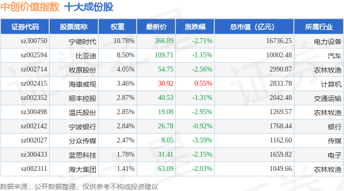 中创价值(399627)指数十大成份股详情如下:
