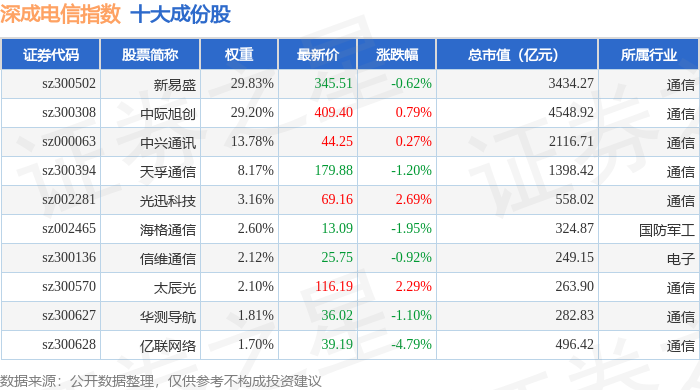 深成电信(399688)指数十大成份股详情如下:
