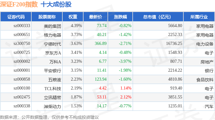资金流向方面,深证F200(399703)指数成份股当日主力资金净流出合计194.49亿元,游资资金净流入合计41.31亿元,散户资金净流入合计153.19亿元。成份股资金流向详情见下表: