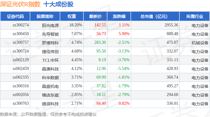深证光伏R(470035)指数十大成份股详情如下: