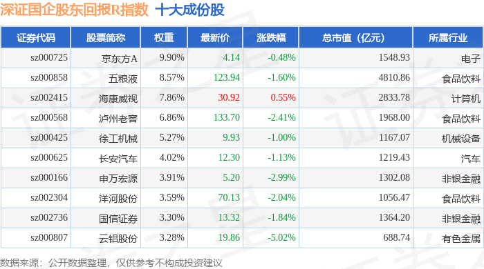 深证国企股东回报R(470064)指数十大成份股详情如下: