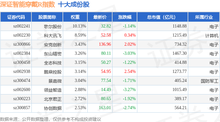 深证智能穿戴R(470074)指数十大成份股详情如下:
