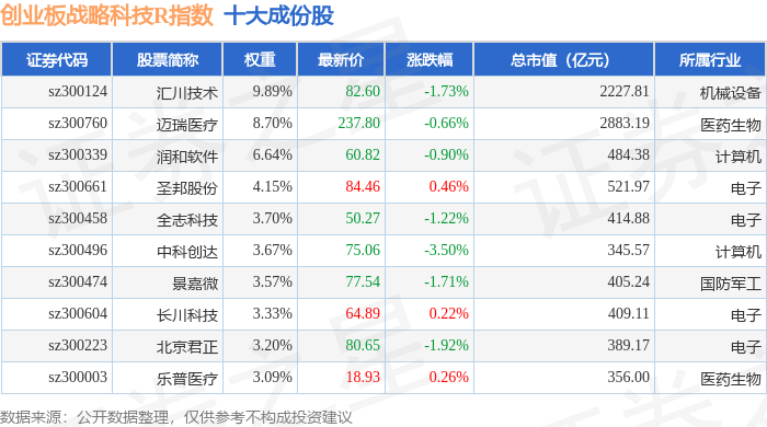 创业板战略科技R(471004)指数十大成份股详情如下: