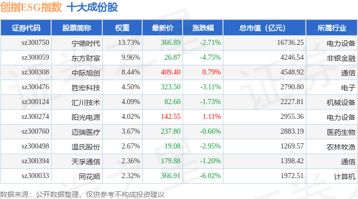 资金流向方面,创指ESG(970028)指数成份股当日主力资金净流出合计153.69亿元,游资资金净流入合计52.74亿元,散户资金净流入合计100.95亿元。成份股资金流向详情见下表: