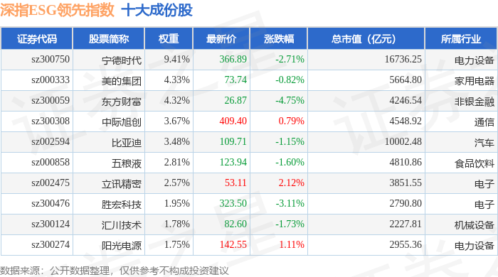 深指ESG领先(970029)指数十大成份股详情如下: