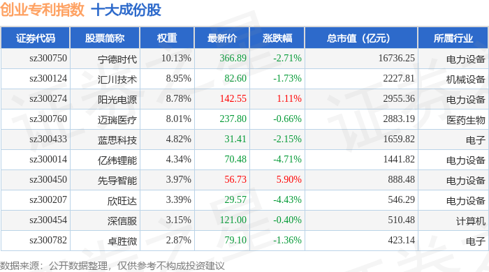 创业专利(970068)指数十大成份股详情如下: