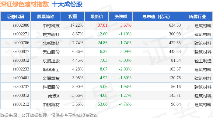 资金流向方面,深证绿色建材(970077)指数成份股当日主力资金净流出合计7388.9万元,游资资金净流出合计2251.31万元,散户资金净流入合计9640.2万元。成份股资金流向详情见下表: