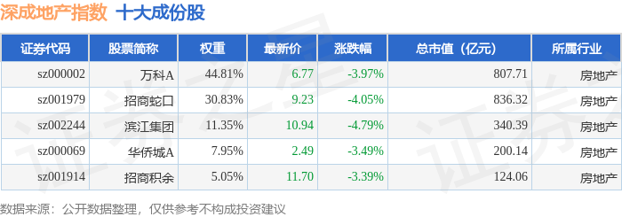 证券之星消息,9月18日,深成地产(971001)指数报收于498.01点,跌4.02%,成交35.67亿元,换手率1.92%。当日该指数成份股中,下跌的有5家,滨江集团以4.79%的跌幅领跌。