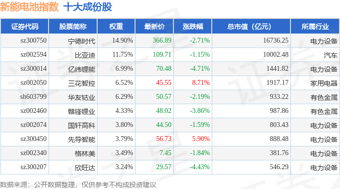 新能电池(980032)指数十大成份股详情如下: