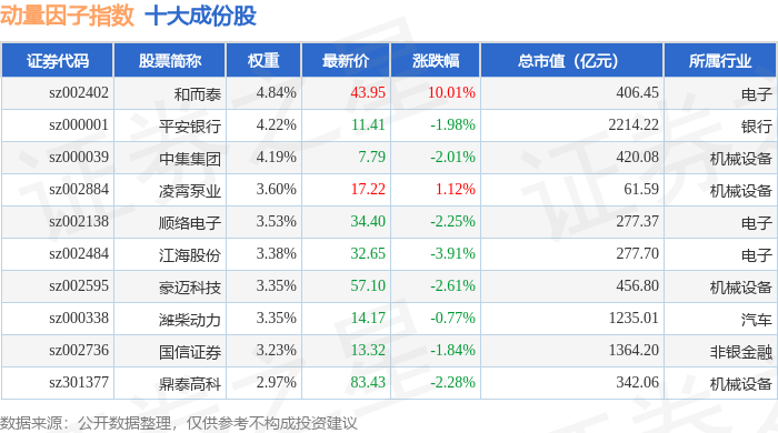 动量因子(980057)指数十大成份股详情如下:
