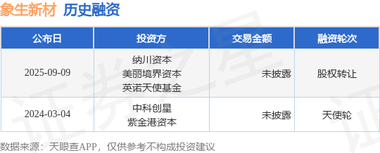 证券之星消息,根据天眼查APP于9月9日公布的信息整理,象生新材(深圳)有限公司股权转让融资,交易额未披露。