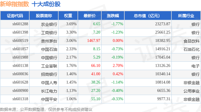 新综指(000017)指数十大成份股详情如下: