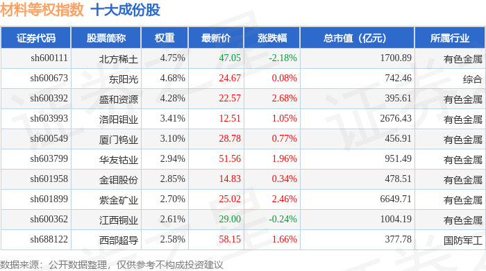 材料等权(000071)指数十大成份股详情如下: