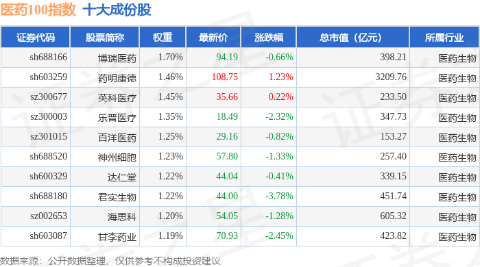 证券之星消息,9月19日,医药100(000978)指数报收于11651.16点,跌1.34%,成交503.62亿元,换手率1.31%。当日该指数成份股中,上涨的有9家,奕瑞科技以1.82%的涨幅领涨,下跌的有89家,康弘药业以6.09%的跌幅领跌。