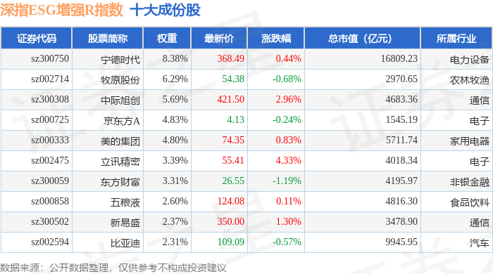 深指ESG增强R(470032)指数十大成份股详情如下: