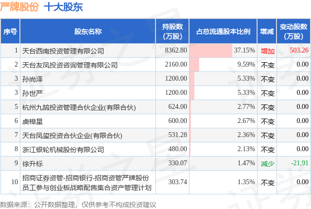 根据严牌股份2025年中报公布的十大股东详情如下:
