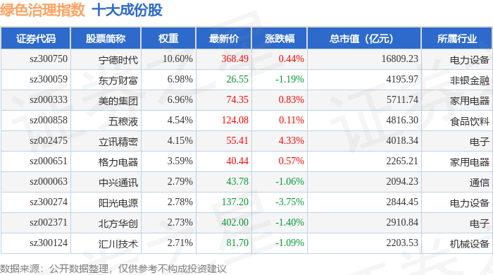 资金流向方面,绿色治理(980058)指数成份股当日主力资金净流出合计15.19亿元,游资资金净流出合计6.42亿元,散户资金净流入合计21.61亿元。成份股资金流向详情见下表: