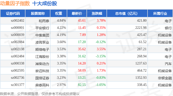 动量因子(980057)指数十大成份股详情如下: