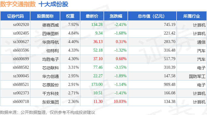 数字交通(980075)指数十大成份股详情如下: