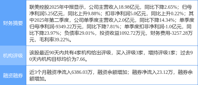 2025年9月1日,中国银河研究员陶贻功,梁悠南,马敏发布了对联美控股的研报《联美控股2025中报点评:供热板块业绩弹性值得期待》,该研报对联美控股给出“买入”评级。研报中预计公司2025-2027年将分别实现归母净利润8.52、9.88、11.16亿元,对应PE分别为18.02x、15.56x、13.77x,维持“推荐”评级。证券之星数据中心根据近三年发布的研报数据计算,该研报作者对此股的盈利预测准确度为45.78%。