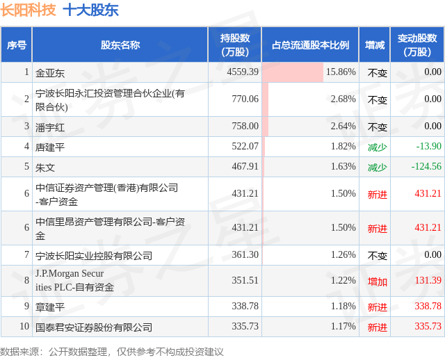 根据长阳科技2025年中报公布的十大股东详情如下: