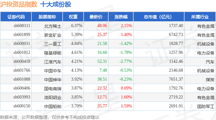 证券之星消息,9月22日,沪投资品(000102)指数报收于6671.0点,涨0.26%,成交687.45亿元,换手率1.2%。当日该指数成份股中,上涨的有17家,中金黄金以9.42%的涨幅领涨,下跌的有32家,阿特斯以4.41%的跌幅领跌。