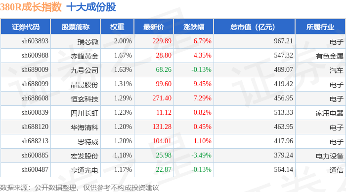 证券之星消息,9月22日,380R成长(000119)指数报收于4342.97点,涨0.59%,成交1718.06亿元,换手率1.92%。当日该指数成份股中,上涨的有121家,聚辰股份以15.35%的涨幅领涨,下跌的有157家,博瑞医药以13.15%的跌幅领跌。