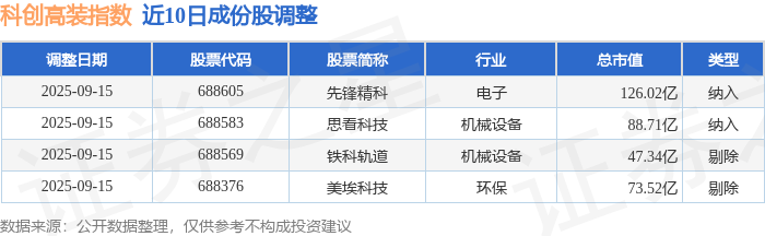 近10日内科创高装(000687)指数成份股做了调整,新纳入了2只股票,剔除了2只股票。