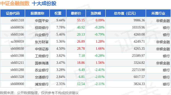中证金融(000934)指数十大成份股详情如下: