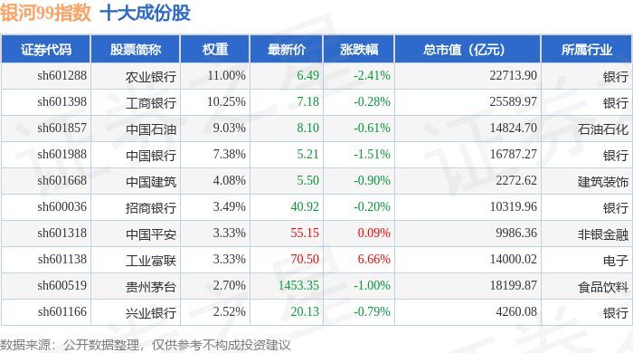 银河99(000959)指数十大成份股详情如下: